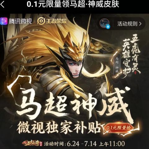游戏攻略 王者荣耀微视0.1元领马超神威皮肤怎...