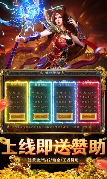 在《雷神战记》中,免费开通黄金赞助、铂金赞助、钻石赞助、王者赞助不再是遥不可及的梦想。这些赞助等级通常需要玩家花费大量的金钱才能解锁,但在本游戏中,你无需花费一分钱,就能免费享受所有赞助等级带来的特权。从增加经验获取速度到提升装备掉落概率,从解锁特殊技能到获得专属称号,各种特权让你在游戏中如鱼得水,轻松成为传奇世界的强者。