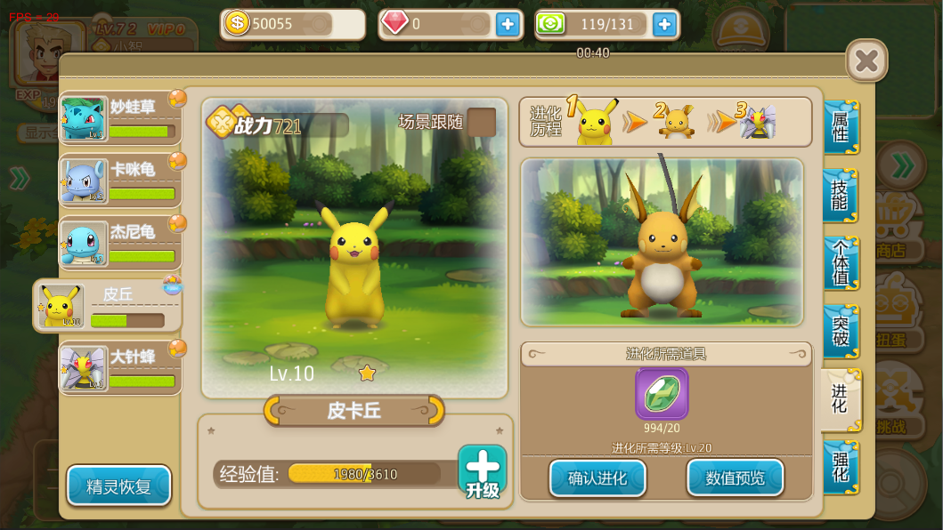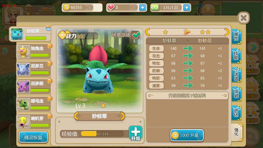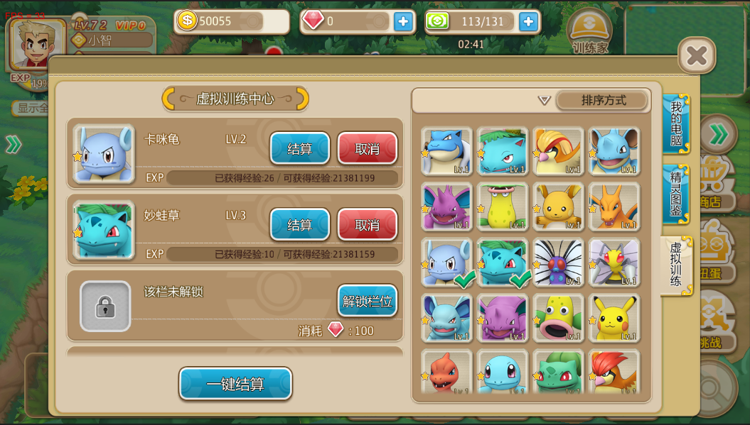 通过将精灵放置入“精灵中心”中的“虚拟训练所”中获取经验,进行升级;