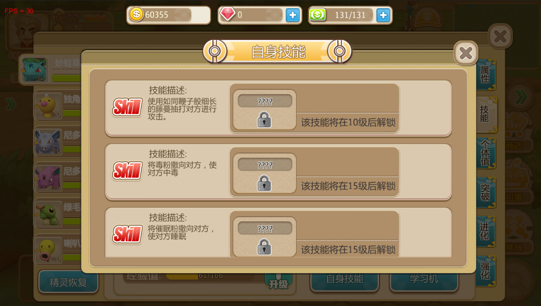 l 通过提升口袋妖怪的等级来习得其本身可以习得的技能;