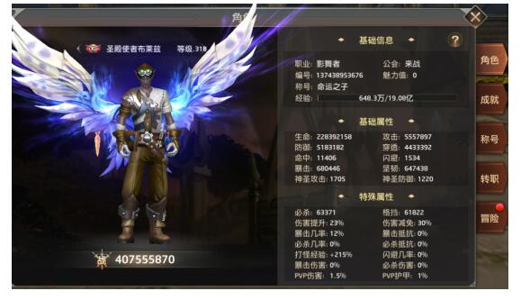 角色属性包括了基础属性、战斗属性和非战斗属性三个部分,玩家还可以利用神格提升直接增加角色的属性值,培育专属于自己的最强天使!