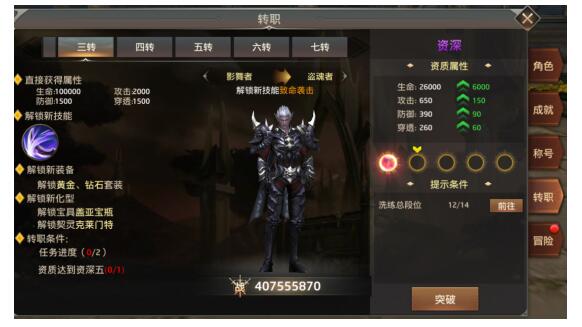 当角色等级达到要求后,还将开启专职,获得更高属性加成,介绍更多装备模块。