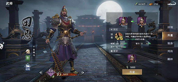 当我们来到《七雄纷争》没多久,就能招募到田忌作我们的武将,这位实力派虽说资质不算顶级,但紫色武将在前期开荒的过程中还是大有作为的,随便跟着剧情走走升升级,就能使战斗变得轻松。