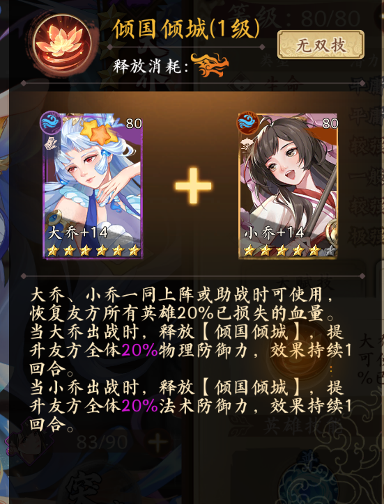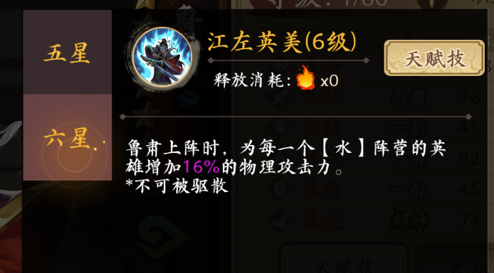 当前截图为1星神机效果,6星奈何的效果为:16%伤害提升,叠6层。孙尚香配合貂蝉再动,几乎一回合就可以叠满。