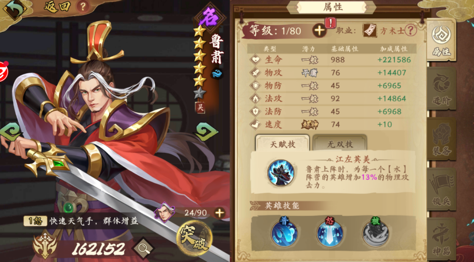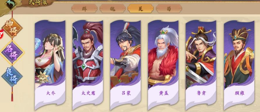 吕蒙:竖排数值怪,和太史慈非常搭配,目前玩的比较少,有待开发。