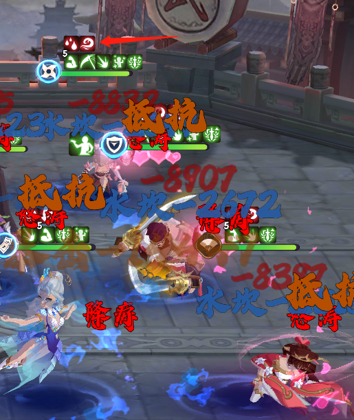 怒涛BUFF持续2回合,可以被驱散,且一旦我方水系武将攻击敌方被附加怒涛的武将后,怒涛BUFF会立即消失,换句话说怒涛BUFF只能享受一次伤害增益。