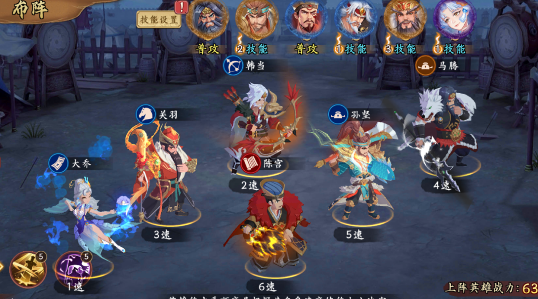 速度配置:大乔1速,韩当2速,关羽3速度,其余随意。