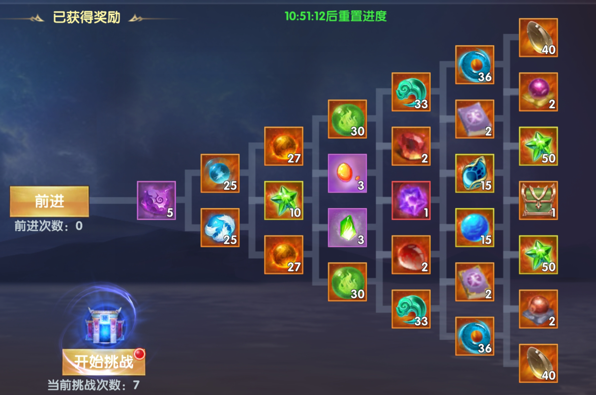 每日强者路,每日0:00增加1次副本挑战次数,挑战成功可得一次行走机会,每日前进随机,可消耗元宝重新前进;前进可得豪礼,SS神仆、海量进阶道具等你来拿;