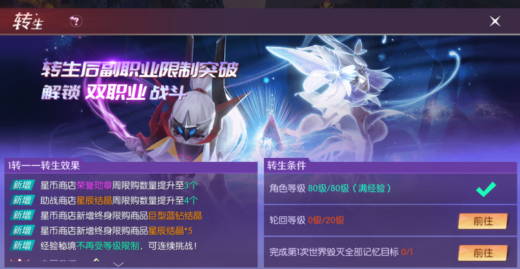 前期游戏目标跟随记忆碎片要求走,完成任务后达到目标才可转生,开启后续副本。