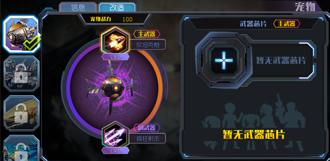 宠物和人物一样,有主武器和副武器。