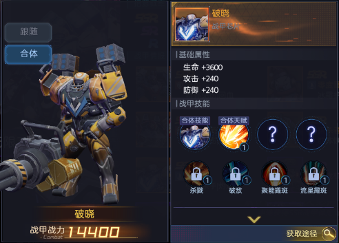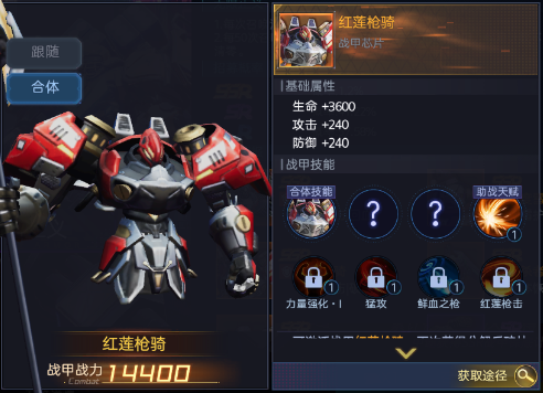 随着玩家为自己上阵的战甲升到相应等级可以解锁更多的合体技能