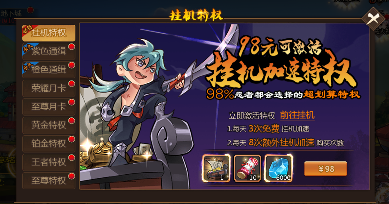 大R玩家可以选择购买礼包等方式获得更大的提升,获得自己喜欢的忍者组合!!
