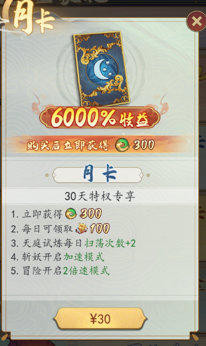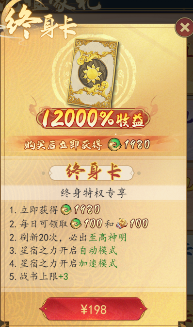 2、月卡、终身卡。微氪党必备,性价比极高