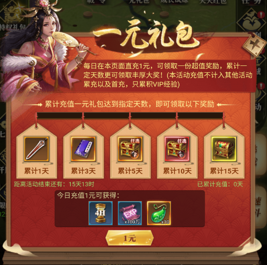 一元礼包仅需0.01元,领取橙色极品武器和金色神将!