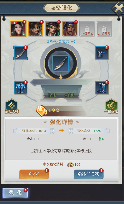 游戏内主要以推动剧情主线为主,通过主线获得更高品质的装备和材料去养成自己的武将。