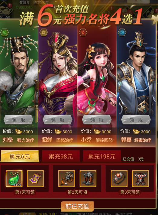 首充礼包仅需0.06就能获得强力名将还有极品装备!