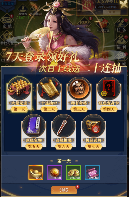 七天登录送豪礼!更有橙色装备和20抽等你来拿!