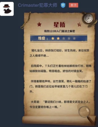 Crimaster犯罪大师谜题星桥第一至三关答案解析