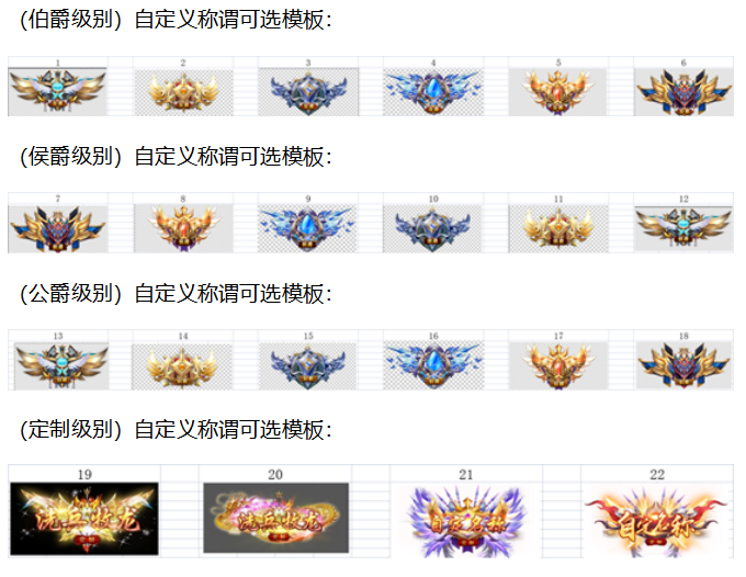 称号级别:伯爵级/侯爵级/公爵级/定制级