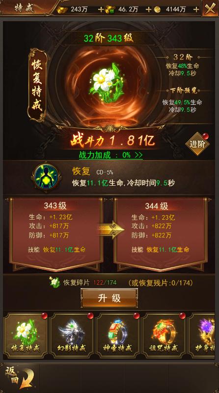 3.战斗力也可以通过强化对应的神兵装备来获取,但总体收益不高。
