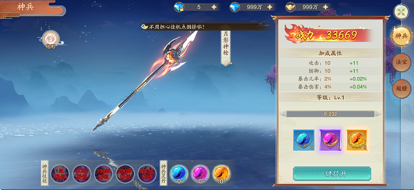 除了以上的玩法,还有神兵的其他培养方式,包括精铸、升品、灵纹,多种培养方式,助各位玩家征战天下